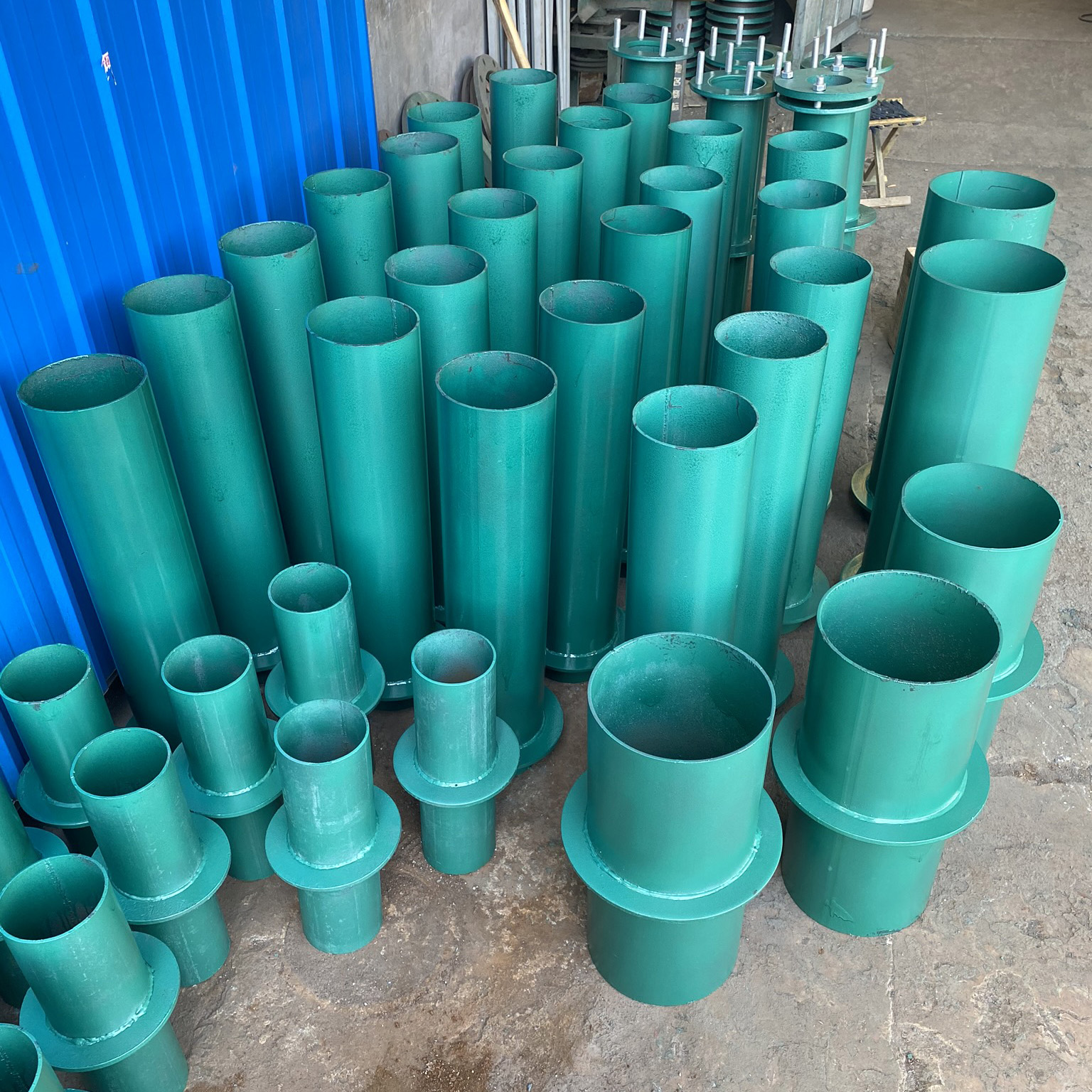 柔性防水套管 的安裝表明 1、当迎河面为腐蚀物质时,可采用堵漏原材料将间隙堵漏。 2、套管过墙处如遇非混凝土墙面时,应部分改成混凝土墙面,其混凝土浇筑范畴应比翼环直徑(D5)大200,并且务必将套管一次混凝土浇筑于内外墙。 3、过墙处混凝土墙面后应不低于300,不然应以墙面一边加厚或两侧加厚,加厚一部分的直